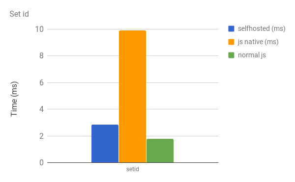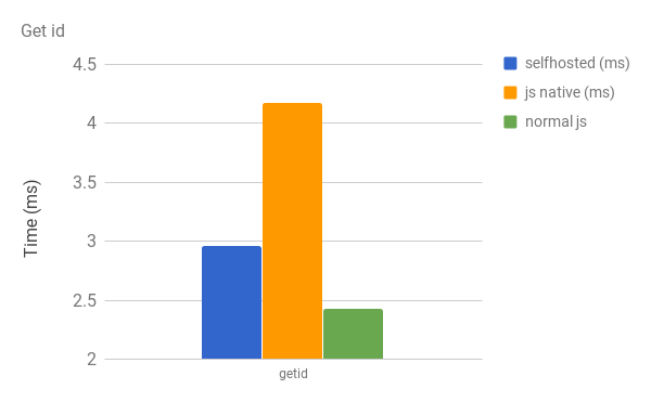 From Figure 3, we can see that the self-hosted JavaScript is done better than the js native. Here the id is stored as JSString.